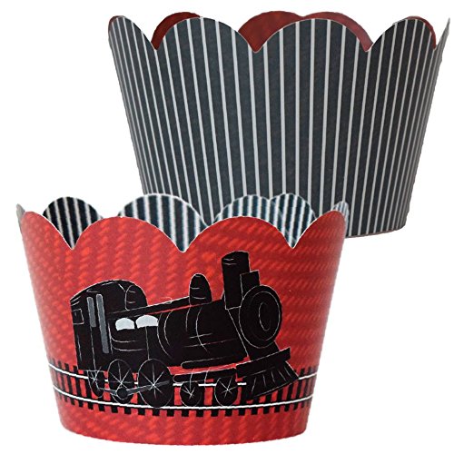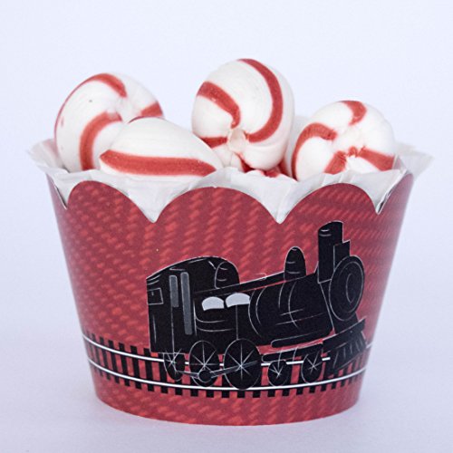 Train Party Supplies, Railroad Theme Cupcake Wrappers, Christmas Treat Packaging, Goodie Bag Favor Holders, Choo Choo 2nd Birthday Cup Cake Liner Wraps, Dessert Table Display