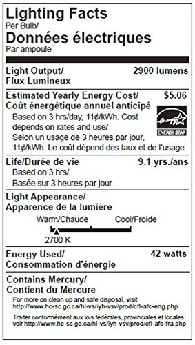 Brilliant Company - TCP is a publicly traded company on the NYSE (Symbol TCPI) headquartered in Aurora, OH. You are brilliant for making the decision to switch to energy efficient lighting from TCP! Our philosophy at TCP is to provide you with the perfect energy-efficient light for your every need. For over 20 years, TCP has delivered cutting edge lighting products to our customers. We control every facet of the design, development and manufacturing process to ensure you get a quality product you can count on. Brilliant Savings - Because this TCP CFL is designed to last for 7 years or more*, you won't have to worry about switching out your lights for quite some time. TCP CFLs are the perfect energy saving replacement for standard incandescent bulbs and will drastically reduce your energy bills while providing the same light quality. Brilliant Color - These TCP CFLs give you beautiful light output with just a simple flip of a switch. Features - 75% less energy than incandescent bulbs - Excellent Color Consistency and CRI - UL approved in enclosed fixtures for outdoor use - ANSI construction compliant - They will fit in applications where a traditional incandescent is used For this reason, it is no surprise TCP has been named Energy Star's 2014 Partner of the Year! Start saving on your energy bills today! Enjoy this TCP 68942ED CFL Spring A Lamp - 150 Watt Equivalent (only 42W used) Soft White (2700k) Spiral Light Bulb and start saving on your electricity bill today! Be sure to check out www.amazon.com/tcp for other highly rated Halogen, CFL and LED light bulbs to fit your home and business needs! 0 |