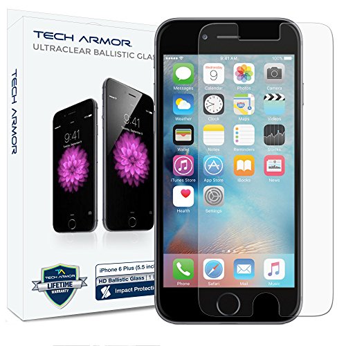 WHY SHOULD YOU BUY TECH ARMOR BALLISTIC GLASS SCREEN PROTECTORS? A broken iPhone 6/6S Plus screen is going to cost about $249 to replace! FOR A FRACTION OF THAT PRICE - Our Ballistic Glass Screen Protector will absorb almost any impact- sacrificing itself for your iPhone 6/6S Plus screen! MAXIMIZE YOUR RESALE VALUE - The Ballistic Glass screen protector pays for itself as the first line of line of defense from scratches and drops! If you only accept the BEST then look no further: ? BEST Protection from Drops ? BEST Protection from Scratches ? BEST Way to Maximize Resale Value ? BEST Bubble free Installation ? BEST HD Display Clarity ? BEST Touchscreen Accuracy ? BEST Hassle-Free Lifetime Warranty Tech Armor Ballistic Glass is a low cost insurance policy for your screen. As a first line of defense, this screen protector will pay for itself. COMPATIBILITY: Appe iPhone 6/6S Plus , All Carriers, All Models The Ballistic Glass Screen Protector Kit Includes: - One (1) Ballistic Glass Screen Protector (.2 mm - 9H Rating) - Installation Instructions - Alcohol Cleaning Wipe - Microfiber Cloth - Dust Removal Tape - Retail Packaging - Lifetime Replacement WarrantyFeature