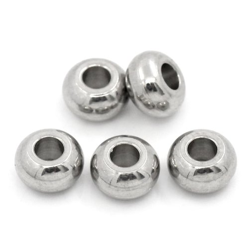 HOUSWEETY Stainless Steel Silver Tone Round Jewerly Findings Solid Beads 5mm (100PCS)