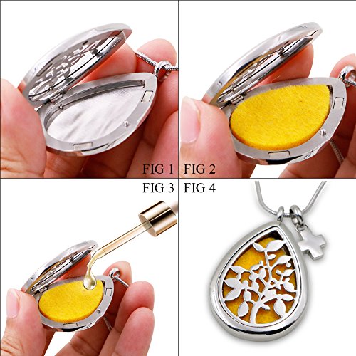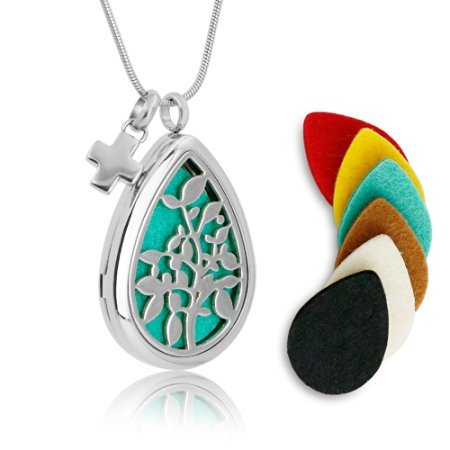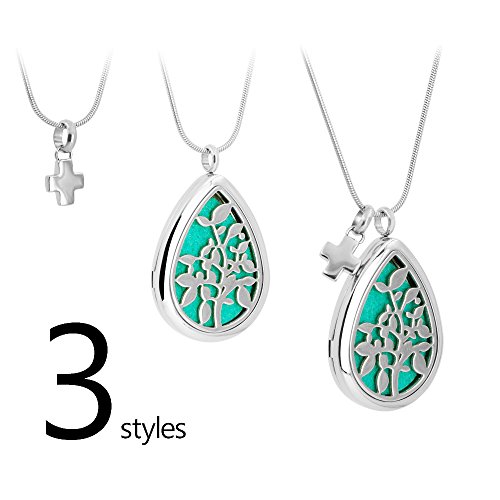-. Feature : NATURAL - No harm to skin.Its very COMFORTABLE when this Necklace touch your skin.Cotton pieces are made from high quality material,feels SOFT.You can enjoy the scent of your favorite essential oil without the oil touching your skin / GOOD VALUE FOR MONEY - Necklace is not only a Jewelry, also a mini diffuser . Pendant and the cross charm, 1 set, 2 styles. You can match them at will. For an EXCELLENT QUALITY, DELICATELY PACHED and MODERN product, it is worth the price / PREMIUM MATERIAL - Pendant and 24 inch chain is made from hypo-allergenic surgical grade 316L stainless steel for long life and DURABLE. The chain is adjustable / A PERFECT GIFT - This necklace come with a beautiful wrapped gift box. It's a great choice as a gift for your lovely family and good friends on birthdays, Christmas, holidays, graduations, or any gift giving occasion.I believe they will love this beautiful and practical necklace / GUARANTEED SATISFACTION - Two strong magnets closure and solid back insure you never have to worry about getting oil on your clothes Buy with confidence! Every essential oil diffuser necklace is covered by our NO QUESTIONS asked