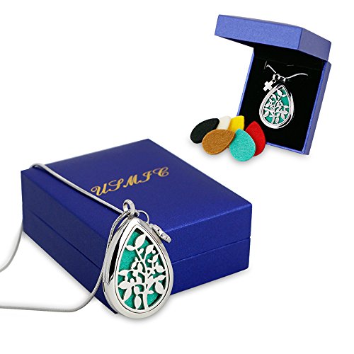 -. Title : Teardrop Aromatherapy Essential Oil Diffuser Necklace Locket Pendant Hypo-Allergenic 316L Surgical Grade Stainless Steel With Premium 24" Snake Chain and 6 Refill Pads