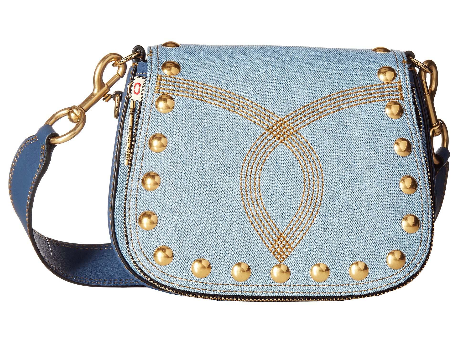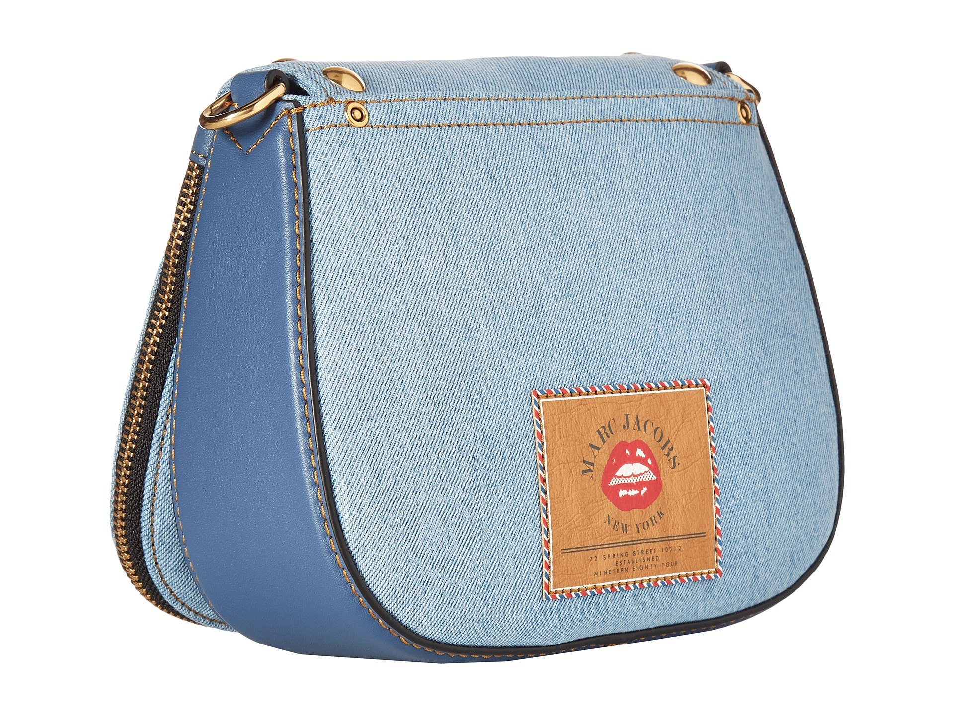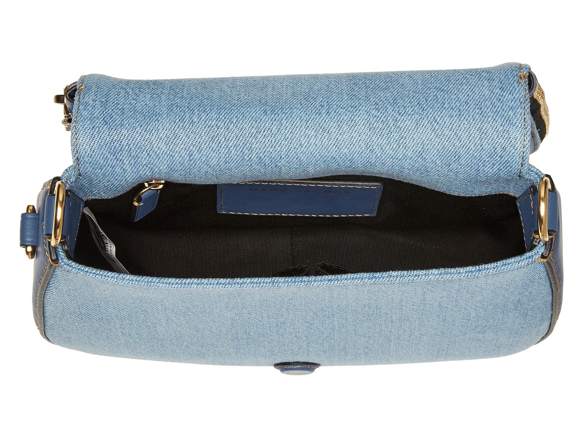| Product Information SKU: #8822482Get the Marc Jacobs™ Denim Small Nomad and have a classic look of elegance with edge. Convertible bag from 100% denim.Fold-over flap that has decorative full wrap around zipper with magnetic snap closure.Intricate, stitched paradise inspired designs decorating the top flap with majestic color.Decorative front pocket with zipper closure.Removable and adjustable crossbody shoulder strap. Brand name logo hardware in a golden sheen decorating exterior back wall slide pocket. Flat base to provide upright structure. Lined interior features back-wall zipper pocket and two internal slide pockets. Imported. This item may ship with an attached security tag. Merchandise returned without the original security tag attached or a damaged tag may not qualify for a refund.This product may have a manufacturer's warranty. Please visit the manufacturer's website or contact us at warranty@support.zappos.com for full manufacturer warranty details.Measurements: Bottom Width: 8 1?4 in Depth: 3 in Height: 8 in Strap Length: 49 in Strap Drop: 24 in Weight: 1 lb 12 oz |