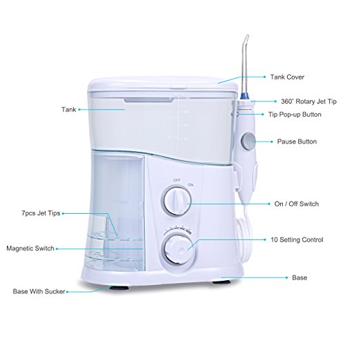 Water Flosser, PrettyMakeUp Oral Counter Top Oral Irrigators with Six Interchangeable Nozzles Oral Irrigator