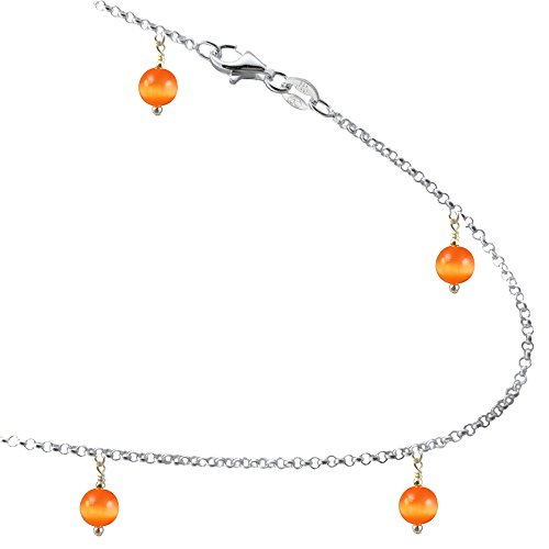 -. Feature : Metal- .925 Sterling Silver. 1.5mm Rolo style Link / Made with Cat's-eye Beads / Color- Orange / Length- 7, 8, 9, 10, 11, 12, 13 Inches available / Anklet, Bracelet