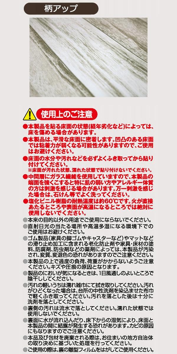 | のりを使っていないのでキレイにはがせますが、ズレ防止機能が付いているのでズレません。表面の強度が優れているのでキズや沈みに強く、キャスターもスイスイ動きます。貼りやすい大きさにはさみで簡単にカットする事ができます。重ね貼りすることもできますので、約1cm重ねて貼ってください。 |