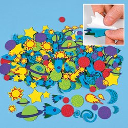 500 Colorful Foam OUTER SPACE self-Adhesive shapes/stickers. Includes all different types of space stickers in assorted colors... Great for ARTS & Crafts Projects, scrapbooking. Great way to keep the kids busy. The Shapes are 1" - 2" in size.Feature