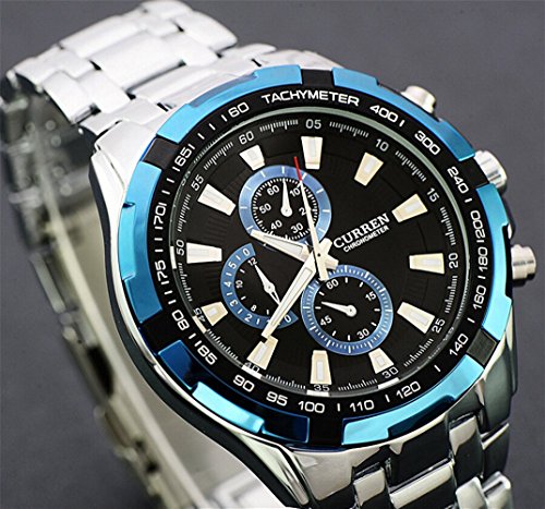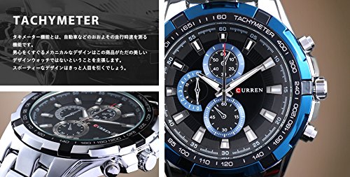 원본상품명: New CURREN ファッション メンズ ステンレススチ?ルバンド アナログ スポ?ツ クォ?ツ腕時計CUR007 (Silver+Blue)