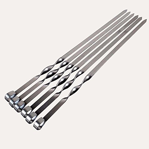 Barbecue Skewers,17-inch Stainless Steel Flat Shish Kabob Skewers BBQ Skewers - Set of 6 by MoreMoo