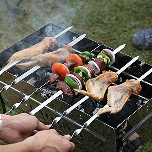 - 【SHARPENED TIP FOR EASY INSERTION】 Sharpened tips will allow you to easily load up your barbecue skewers with lamb, pork, beef, chicken, shrimp, fish, hot dog, vegetables, fruit or whatever else your party calls for!