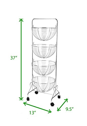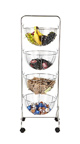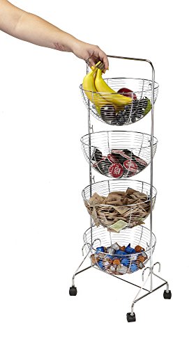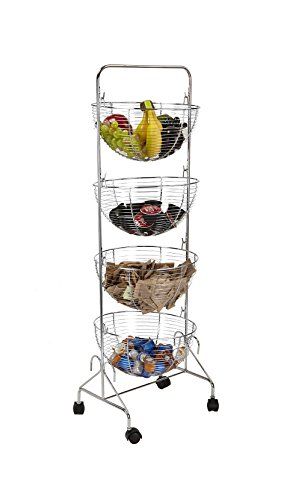 Mind Reader 4 Tier Rolling Kitchen Cart/Utility Cart, Silver