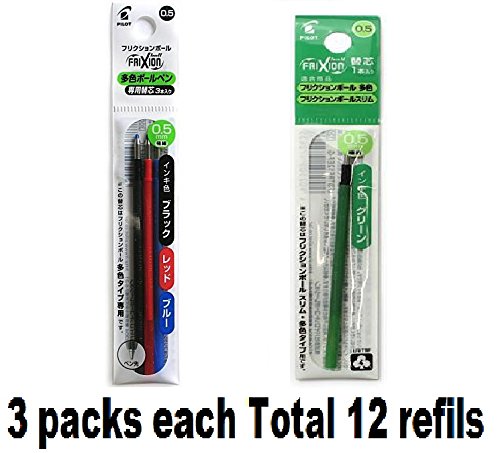 -. Title : Pilot Frixion ball point pen spare slim inks 0.5mm for multi ink ball point pen (Black,Red,Blue,Green) 3 packs set Total 12 Spare inks from Japan