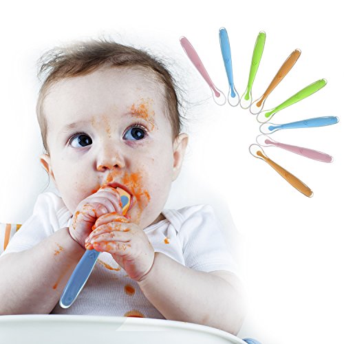 Biubee 8 Pack Silicone Spoon - First Stage Soft Tip Feeding Spoons Gift Set for Baby - Lead, Phthalate and Plastic Free