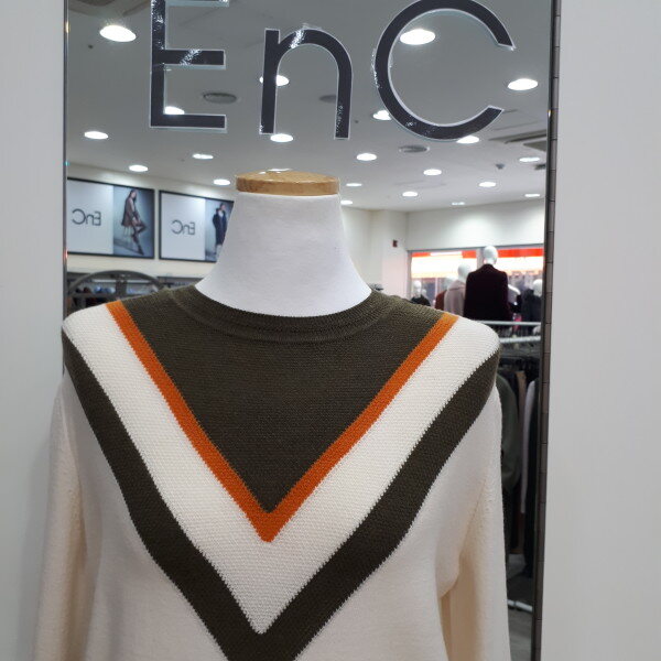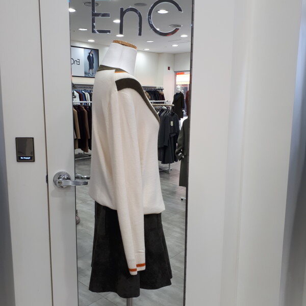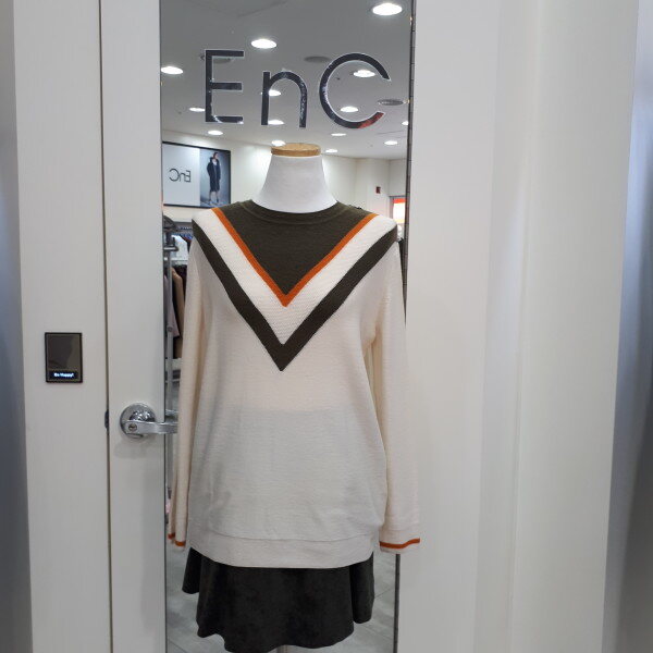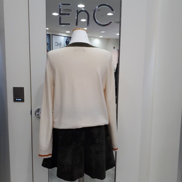 얌전하고 편안한 스타일의 베이직한 니트예요라운드넥에 V라인 배색이 들어가고 소매배색까지 추가되어 단조롭지않고 산뜻한느낌이예요신축성좋고 포근한니트로 편안하개 코디할수있는 아이템입니다