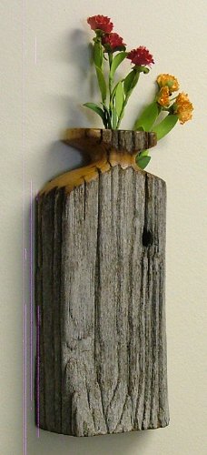 This beautiful vase is handcrafted in North Carolina by skilled artisans who have a love for their craft and they create something that is unique and beautiful as well. Each of these vases are slightly different in width and texture due to the wood it is created from. The wood is 100+ year old American Chestnut that has been abandoned and was used, in days gone by, for split rail fences. Every piece has unique rustic imperfections that are natural and the aged look of the wood make each one unique and different from the other. In the center of the top rim, our artisan, has drilled a half inch hole and inserted a 3 inch long glass tube so you can add water for vines, flowers, etc. We are showing you a silk plant so you can see how great it looks. Vase sizes are 8.50 inches tall and vary from 4 inches to 4.50 inches in width x 1.50 inch deep. We know you will love any one that we send you. Also check out our other vases, American Chestnut Wood Magnetic Flower/Vine Starter Vase and American Chestnut Wood Wall Flower/Vine Starter Vase with Clock.Feature