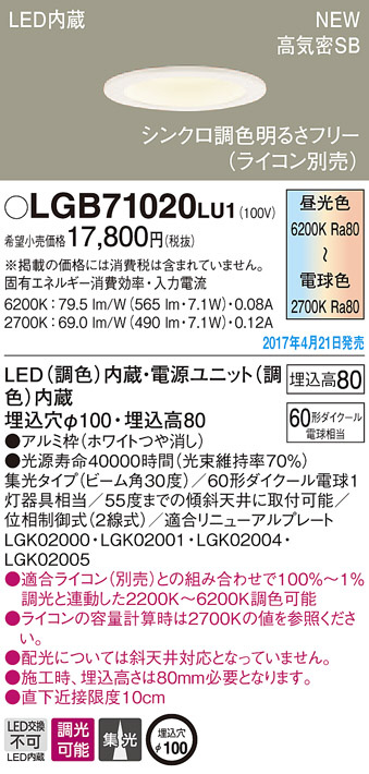 ●寸法(mm):埋込穴φ100・埋込高80
