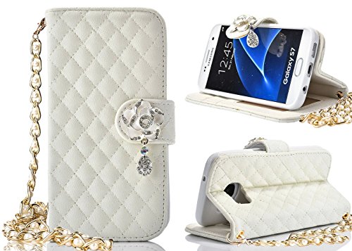 Galaxy S7 Case, Welity Bling Camellia Luxury Synthetic Leather Flip Folio [Money Pocket Wallet] Case Cover with Credit Card Slots Cash Holder and [ Wrist Strap ] for Samsung Galaxy S7 (Pink)