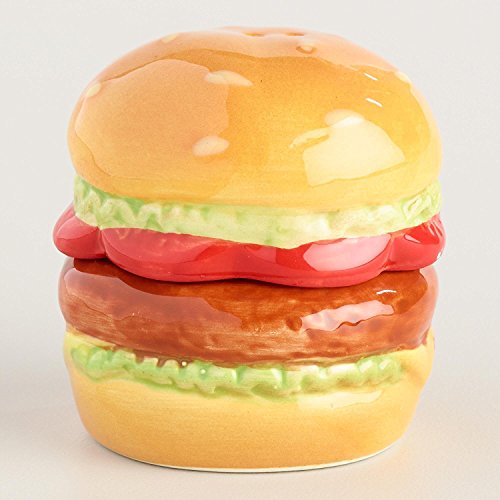 - These novelty hamburger shaped salt and pepper shakers feature two individual half burger shakers that combine with magnets to make a fun showing at the table