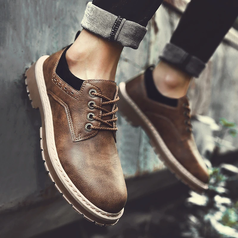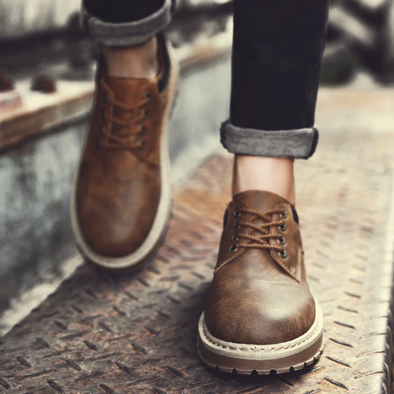 Martin boots:Male Leather Casual Social Vintage