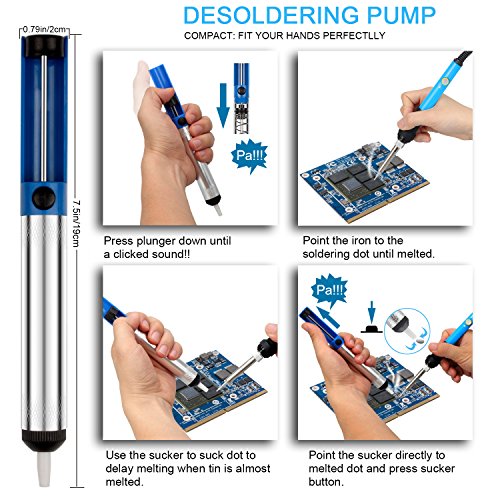 - 【Solder Sucker Desoldering Pump】- Rugged metal construction,the desoldering pump is high pressure vacuum tube with aluminum body frame, which allows easy one-handed use, best for removing solder from PCB through hole solder joints.