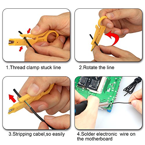 - 【14-In-1 Soldering Kit】- Soldering iron kit comes with soldering iron,desoldering pump, 5 multiple soldering tips, tin wire tube, soldering iron stand, tweezers, wire stripper cutter, 2 electronic wire.