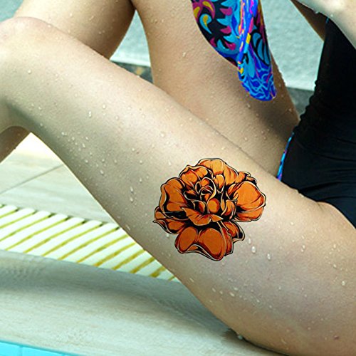 TAFLY Sexy Large Red Rose Flower Temporary Tattoos for Women 2 Sheets