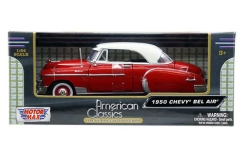 -. Binding : Toy -. Brand : American Classics By Motor Max -. EAN : 0736983535214 -. Feature : Motor Max American Classis / Licenses By Motor Max / Scale: 1:24 DieCast Metal With Some Plastic Parts / Rubber Tires & Detailed Interior / Brand New Box 1950 CHEVROLET BEL AIR COUPE -. IsAdultProduct : 0 -. Label : American Classics By Motor Max -. Manufacturer : American Classics By Motor Max -. ProductGroup : Toy -. ProductTypeName : TOYS_AND_GAMES -. Publisher : American Classics By Motor Max -. Studio : American Classics By Motor Max -. Title : New 1:24 W/B AMERICAN CLASSICS - RED 1950 CHEVROLET BEL AIR COUPE Diecast Model Car By MOTOR MAX -. UPC : 736983535214