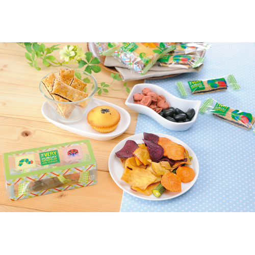●野菜チップス35g×3、テトラ竹炭豆・テトラ梅干豆×各4、黒ごまスイートポテトケーキ×6、ショコラスティックパイ×9