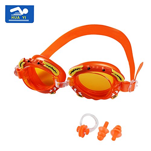 -. Feature : Cute Cartoon - Soft and comfortable silicone eyecup and durable strap contain no harmful chemical substances. Don't get the similar cheap ones, your child is worth more! / Lens is processed with special coating for anti-frog effect,which enchance sight clarity.HUAYI goggle offers 180-degree,wide-angle vision technology to make you see clearly in water / Includes hard plastic case - makes it easy to carry to the pool. Cute cartoon tops - can be removed if you prefer / Soft silicone construction for a cushioned fit free from annoying leaks and uncomfortable pressure / Made with a very substantial, robust, high quality silicone - durable, stylish water goggles