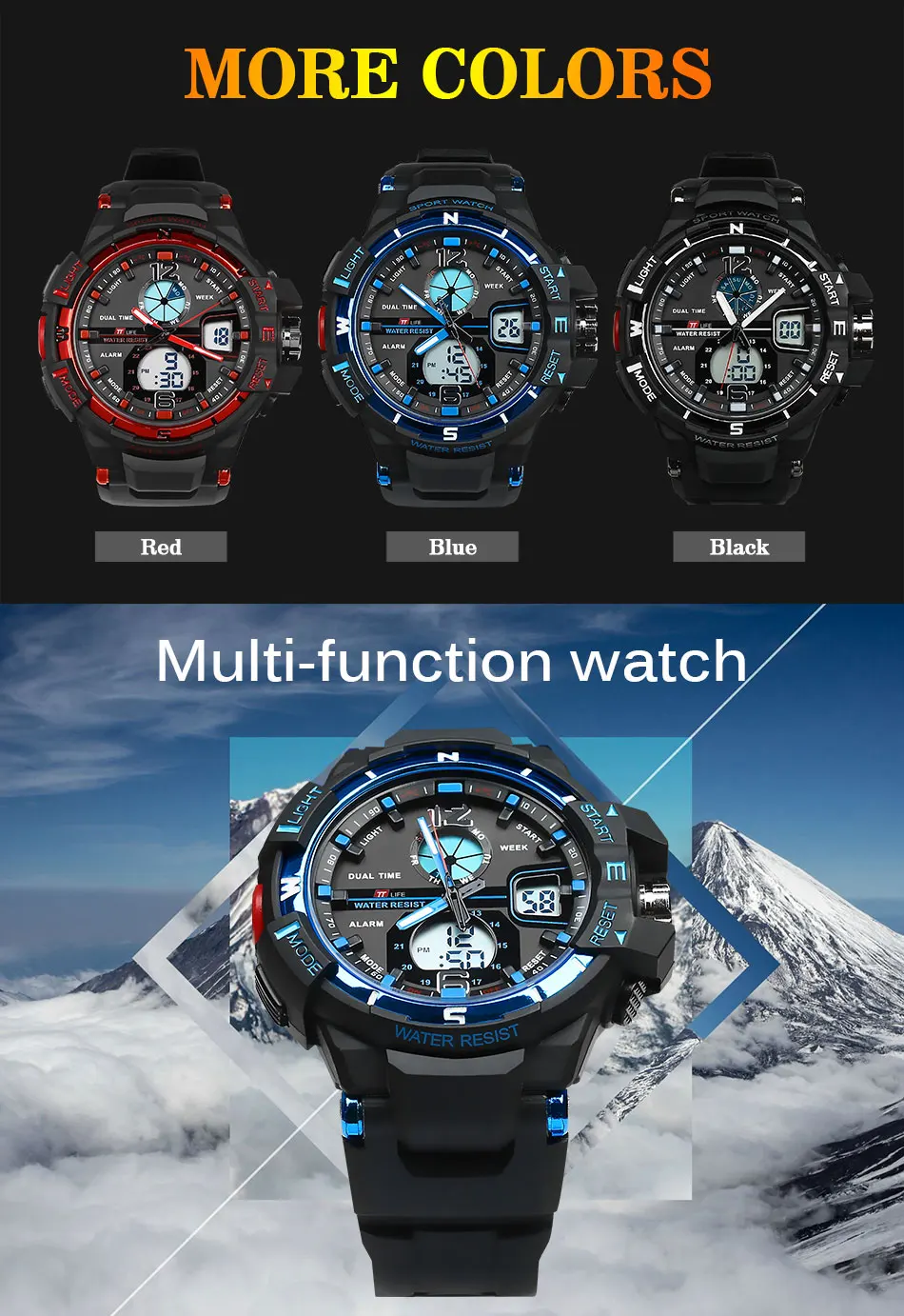Colors of Watches:Blue Red Black