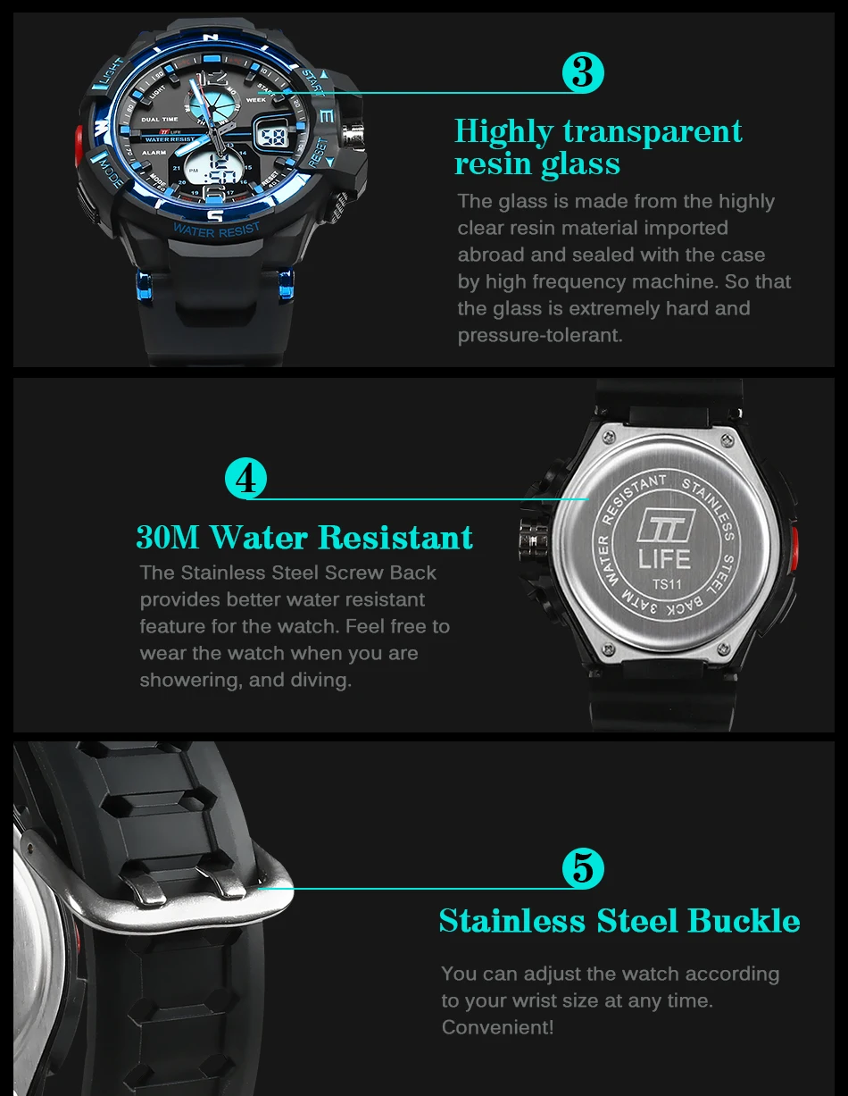 30M Water Resistant:provides better water resistant feature for the watch