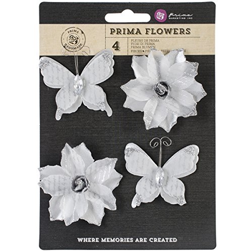 Prima Marketing Snow Frost Bethlehem Paper and Vellum Flowers and Butterflies, 2-Inch by 2.5-Inch, 4-Pack