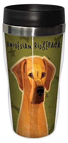 Tree-Free Greetings strives to use the most eco friendly materials and processes possible. Printed and assembled in the USA, The Tree-Free Greetings 16 Ounce Sip 'N Go Stainless Steel Lined Travel Tumbler is vibrantly printed with hard to find Rhodesian Ridgeback themed art by John W. Golden and is great for everyday use. It is reusable therefore eliminating any disposable paper or Styrofoam cup waste. BPA free and Proposition 65 compliant, this beautiful and durable tumbler is stainless steel lined, resists condensation and holds 16 ounces of your favorite hot or cold beverage. To preserve the quality of your tumbler, hand washing is required. The 16 Ounce Sip 'N Go Stainless Steel Lined Travel tumbler makes the perfect gift or souvenir for any occasion. Save trees and spread joy. Buy a Tree-Free earth-friendly gift today.Feature