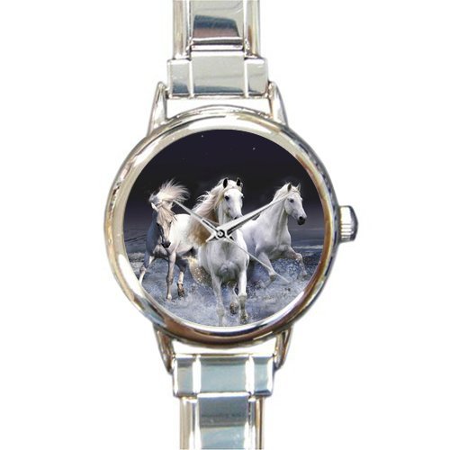 -. Title : Personalized Watch Wild Black Running Horse in the Water Round Italian Charm stainless steel Watch