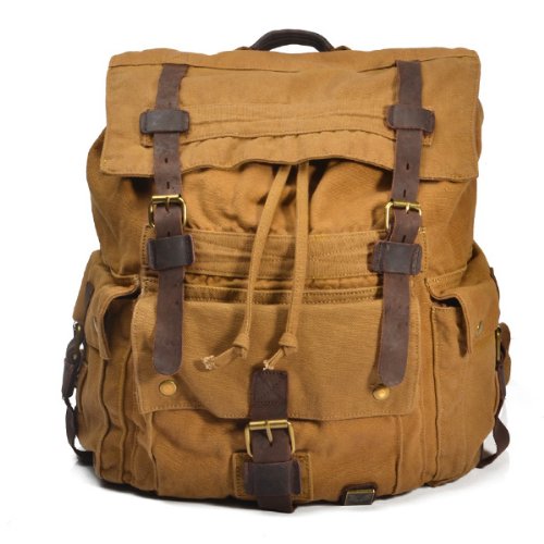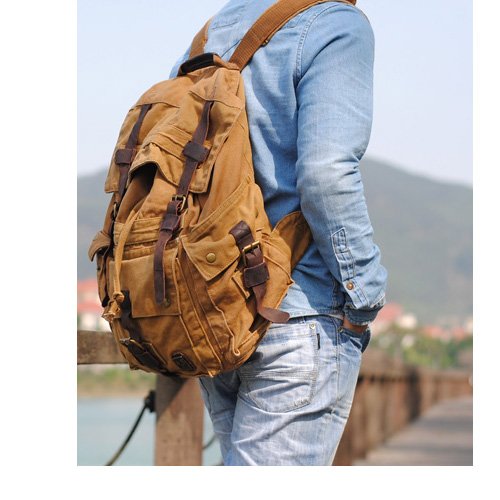 -. Title : Vintage Canvas Backpack Men Backpack Khaki
