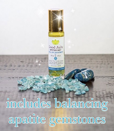- CONTAINS apatite gemstones cleansed and charged by the sun and moon. Apatite is a powerful throat chakra stone, that can enhance communication and self-expression on all levels. Infused with oregano which has anti-viral, anti-bacterial, anti-inflammatory, and anti-allergenic properties. The essential oil blend is decongestant, anti-spasmodic and antiseptic. All combined in a organic coconut oil base which has microbial action, even if taken externally- the fatty acids boost immunity.