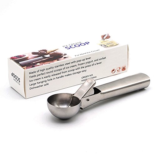 High quality stainless steel. This scoop is made of high quality stainless steel with pop-up lever, working well and providing you a new and best experience.