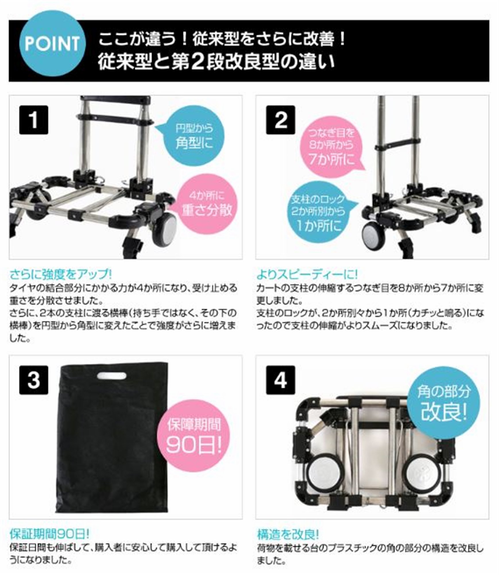 If you support your luggage with the other hand, the burden on the cart is reduced and you can use it for a longer period of time.