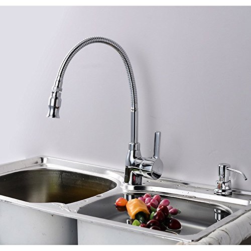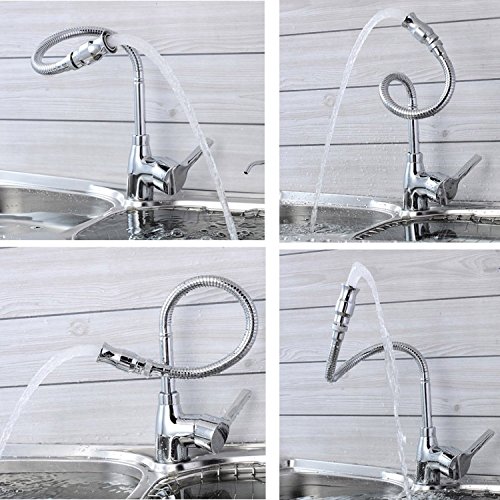 Zingcord Hot and Cold Stainless Steel Kitchen Sink Faucet Pull Down Single Handle Arbitrary Rotating Wet Bar Lavatory Faucet Tap with Flexible Gooseneck (Chrome Finish)