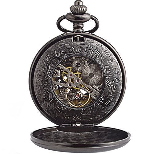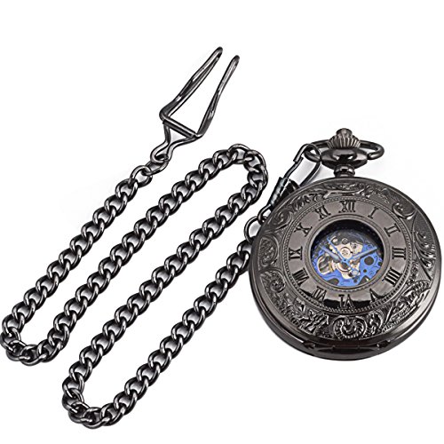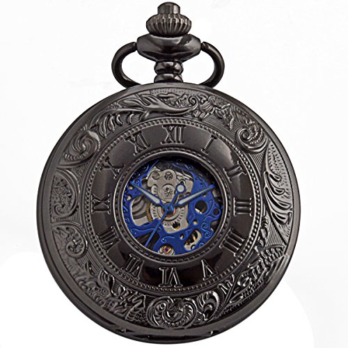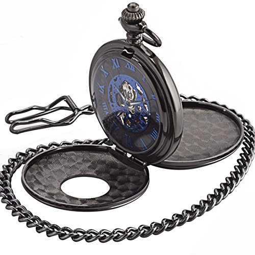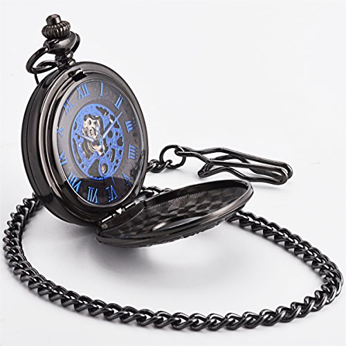 -. Feature : Mechanical Pocket Watch With Double Hunter - Can Stand On Table - An "Eye-catcher" Piece, It Is A Conversation Piece, A Compliments Receiver - It Really Hits The Spot / Black Dial With Blue Roman Numerals Scale Display - 17 Jewel Mechanical Movement - Vintage Double Open Pocket Watches / Well Packed In A Nice Gift Box, Also Comes With A Clearing Cloth And A Manual's Instructions - Sharp Looking, Great Details & Good Running Pocket Watch With Chain / Good Present For Families Or Friends - Even Fits The Chef Or Nurse Who Is Not Allowed To Wear A Wrist Watch In The Work Place - Steampunk Half Hunter Hand Wind Pocket Watch / Battery Needless - Takae Batteries Away - Hand-wind Mechanical Movement, Wind Up Before Every Usage, Tightening A Walk For 24 Hours - Men Skeleton Hand Wind Mechanical Pocket Watches