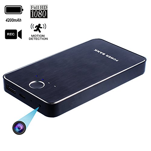-. Feature : 1080P Full HD Video: This spy camera promise record true 1080P of 1920x1080p @30fps video resolution,it support micro SD card loop recording up to 64GB (SD card not included), it also can sync charge for two mobiles while recording / Undetectable & Covert Security Camera: It just looks like a regular power bank, nobody would notice its built-in hidden camera, it come with small compact size, very easily to carry and do covert recording at home or outside, great ideas for home, office, library,nanny hidden surveillance / Motion Detection Record & Loop Record: Support two recording modes, In the motion detection mode, it will only start capture video when detect movement in the field of its view; In the loop recording mode, when the SD card fills to capacity, the camera will automatically overwrite the oldest files with the newest / 4200mAh Rechargeable Battery and Dual USB: Built-in 4200mAh high capacity battery support max 10 hours continuous loop recording after fully charge, come with dual USB output can charge both two mobile devices while do video recording / Easy to Use: Just press the only multi-function button and follow the instructions to control the camera, super easy to operate; you will get 30-days money back and free return or new replcement and 18 months frendly quality warranty
