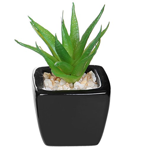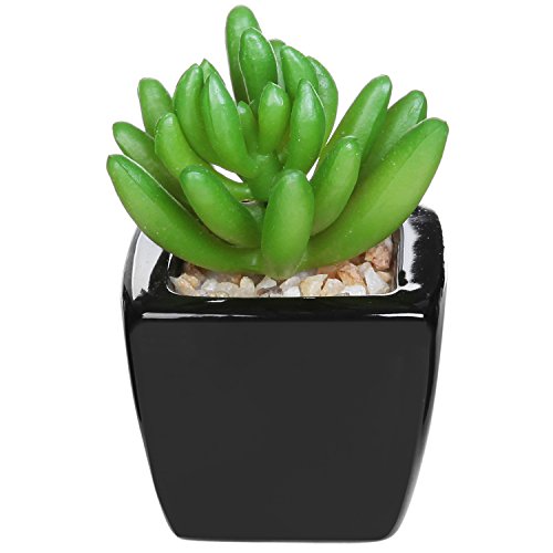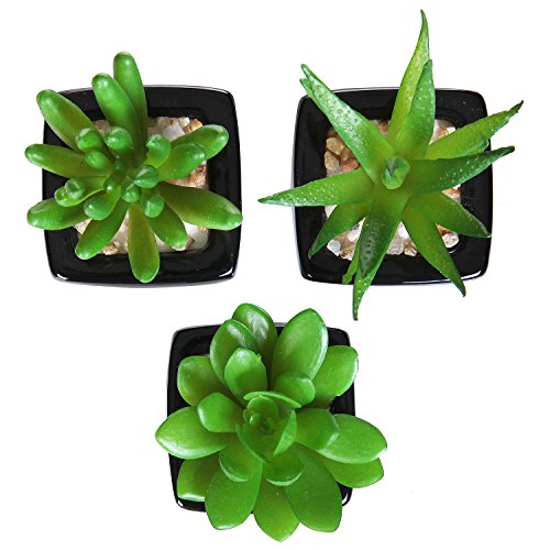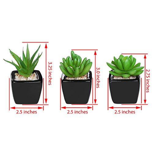 Bring a touch of greenery and modern style into your household with these artificial succulent plants in elegant, minimalist plant pots. The set contains 3 individual modern square pots, each one with a unique succulent plant inside, and these mini planter pots can be displayed together or individually throughout the house. The sleek black ceramic finish of these planters complement the vibrant color of the artificial succulents and help bring modern minimalist design into your home.**Official MyGift® product.**