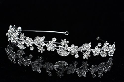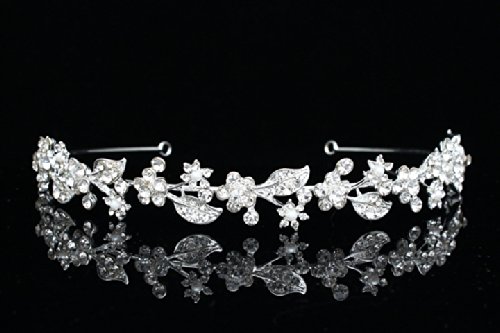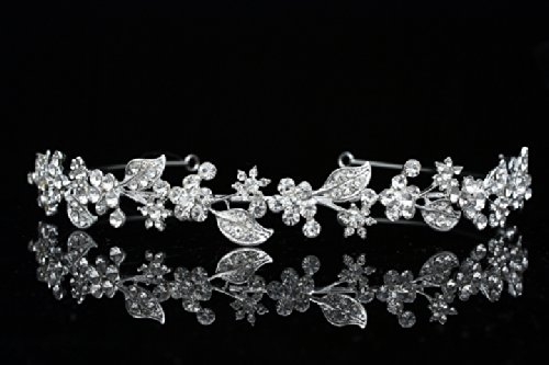 Flower Leaf Bridal Headband Tiara - Clear Crystals Silver Plating T615