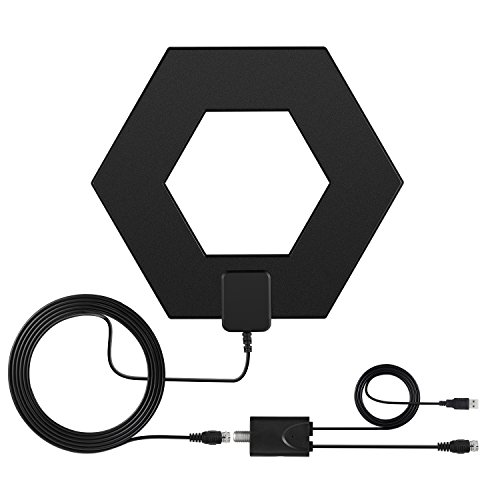 Bestrillion 50+ Miles Amplified HDTV Antenna, Omni-directional Antenna with Sure Grip, 10FT High Performance Coax Cable - Upgraded Version - Black