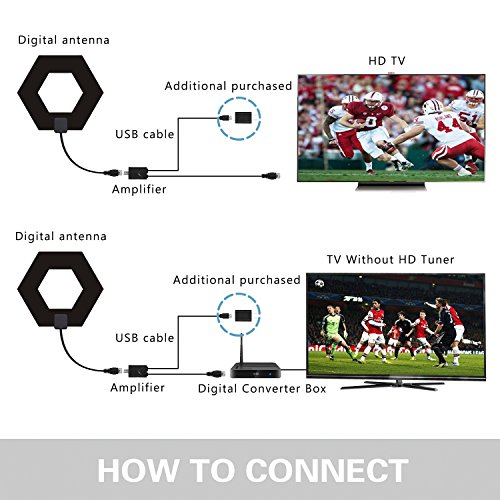 Full HDTV and VHF/UHF/FM Receiving - 60-100mile range amplified tv antenna allows access to far away broadcast towers, delivering full 1080p HD to any digital-ready TV. VHF: 47-230MHz;UHF: 470-700MHz