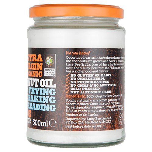 -. Binding : Grocery -. Brand : Lucy Bee -. EAN : 5057065441809 -. Feature : Lucy Bee Sri Lankan Extra Virgin Organic Coconut Oil 500ml / Lucy Bee / 500ml / Quantity: 1 -. Label : Lucy Bee -. LegalDisclaimer : Please be aware that unless expressly indicated otherwise, product packaging may vary from what is shown on this listing. We recommend that you do not rely solely on the information presented on our listing. Please always read the labels, warning and directions provided before using or consuming the product. -. Manufacturer : Lucy Bee -. Model : 108623971 -. MPN : 83624 -. PackageQuantity : 1 -. PartNumber : 83624 -. ProductGroup : Grocery -. ProductTypeName : GROCERY -. Publisher : Lucy Bee -. Studio : Lucy Bee -. Title : Lucy Bee Sri Lankan Extra Virgin Organic Coconut Oil 500ml -. UPC : 721866630735