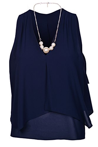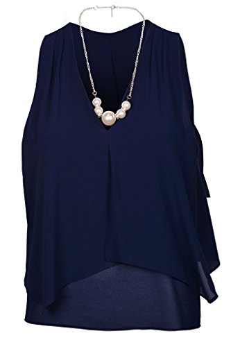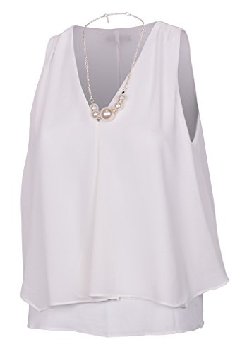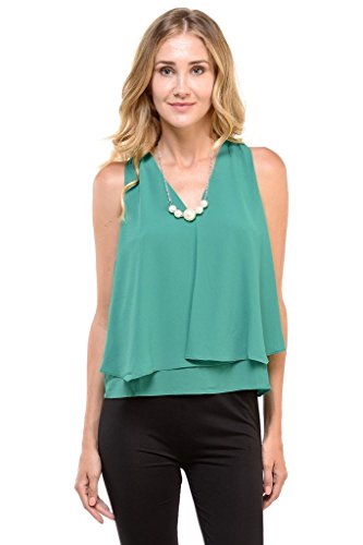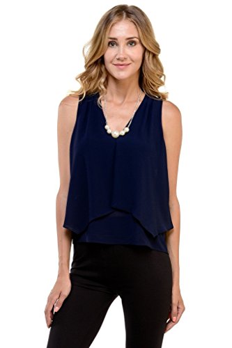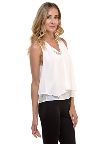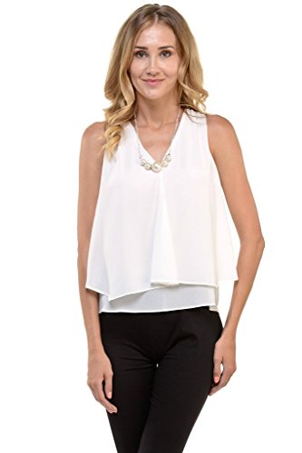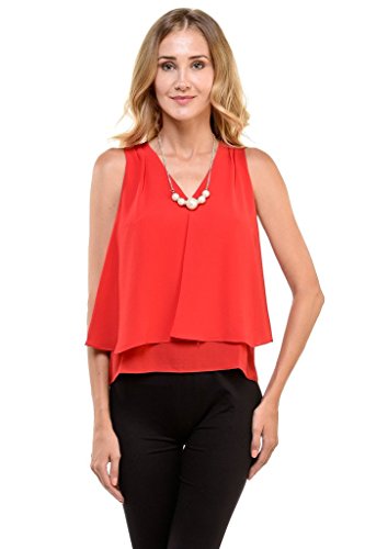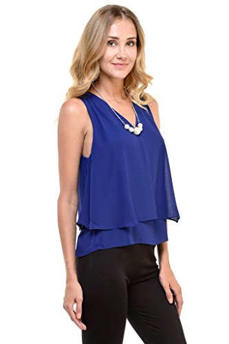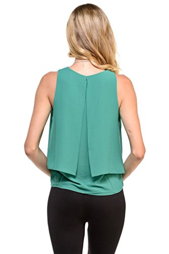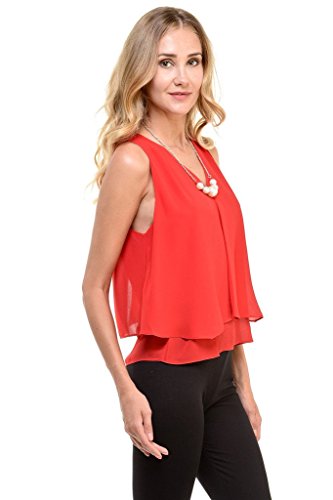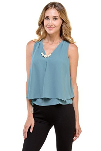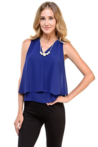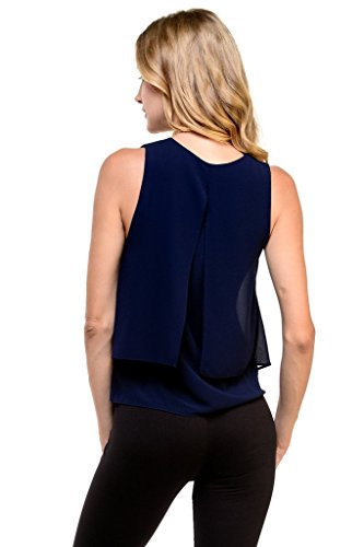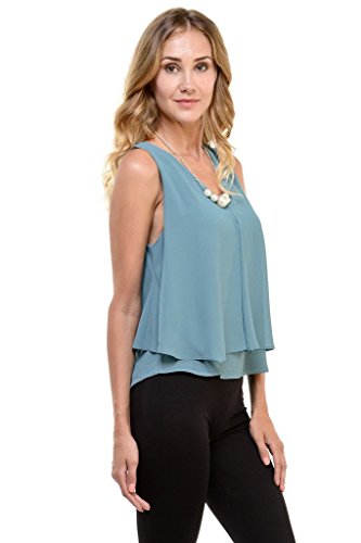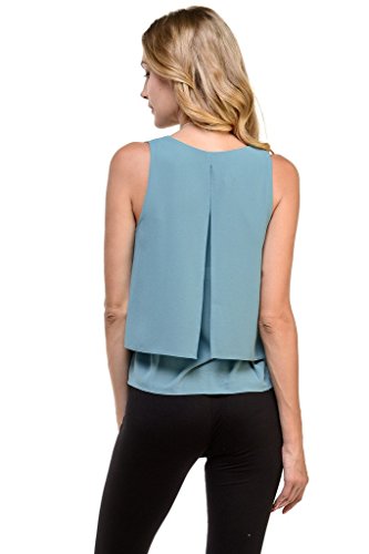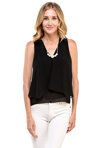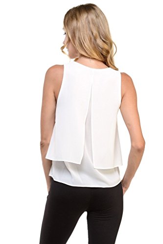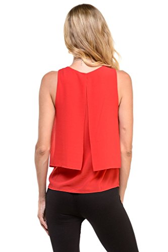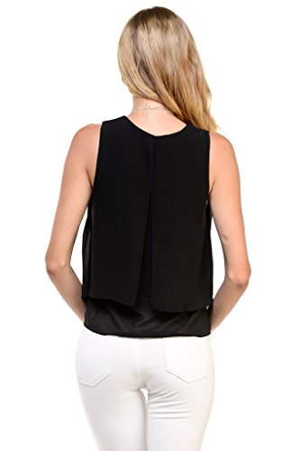 | Women's Sleeveless Chiffon Top Split Layer Tank Top Solid Color Sheer Blouse |