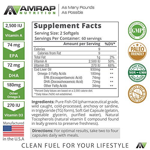 -. Binding : Health and Beauty -. Brand : AMRAP Nutrition -. EAN : 0040232325953 -. Feature : AMRAP Nutrition Cod Liver oil is wild caught and cold processed. / Naturally fermented AMRAP Nutrition's Cod Liver oils is rich in vitamins and contains a balanced ratio of Vitamin A & D. / Each batch of AMRAP Nutrition's Cod Liver oil is independently third-party tested for impurities and heavy metals such as mercury. / AMRAP Nutrition's Cod Liver oil is wild caught and sustainably harvested under the International Fishing Standards Program (IFSP). / Each 500mg softgel is encapsulated in a nitrogen vacuum to prevent oil oxidation and preserve the highest quality. -. IsAdultProduct : 0 -. Label : AMRAP Nutrition -. Manufacturer : AMRAP Nutrition -. ProductGroup : Health and Beauty -. ProductTypeName : HEALTH_PERSONAL_CARE -. Publisher : AMRAP Nutrition -. Studio : AMRAP Nutrition -. Title : Fermented Cod Liver Oil | AMRAP Nutrition - Wild Caught & Cold Processed. -. UPC : 040232325953