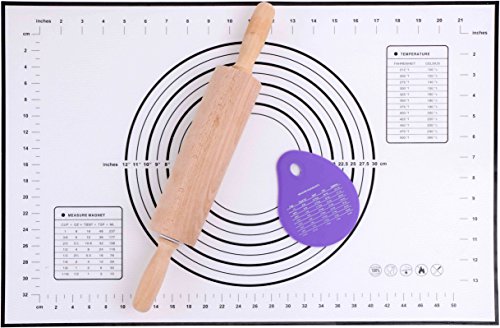 - High quality - The rolling pin is made of 100% beech wood , all nature wood construction . The pastry mat and scraper is made of FDA approved food silicone with a heat resistant to 470°F.