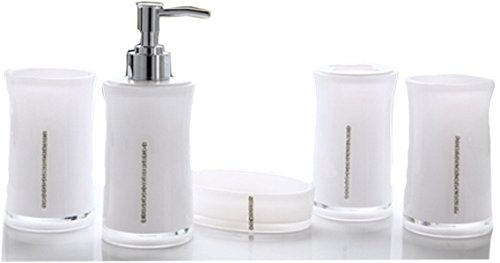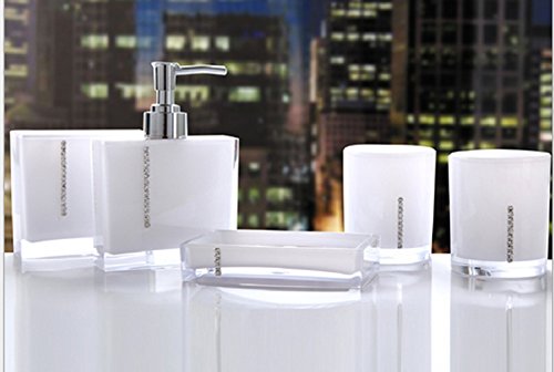 -. Title : AMSS Bathroom Accessory Set 5 pieces Soap Dish Dispenser Tumbler Toothbrush Holder diamante 4 colours